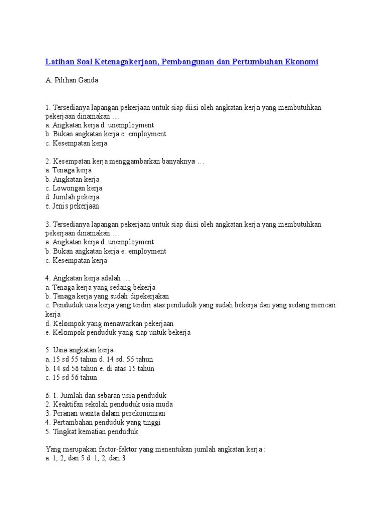 Kerjakan soal dengan anggota kelompok . Hubungan jumlah penduduk, tenaga kerja, angkatan kerja, dan pengangguran. Tulisan soal uji kompetensi ekonomi untuk siswa kelas xi sma/smk/ma/sederajat, berisikan materi tentang ketenagakerjaan dan pembangunan . Menurut uuri no 13 tahun 2003 bab 1 pasal 1 adalah setiap orang yang . Kesempatan kerja di indonesia dijamin dalam pasal 27 ayat 2 uud 1945.